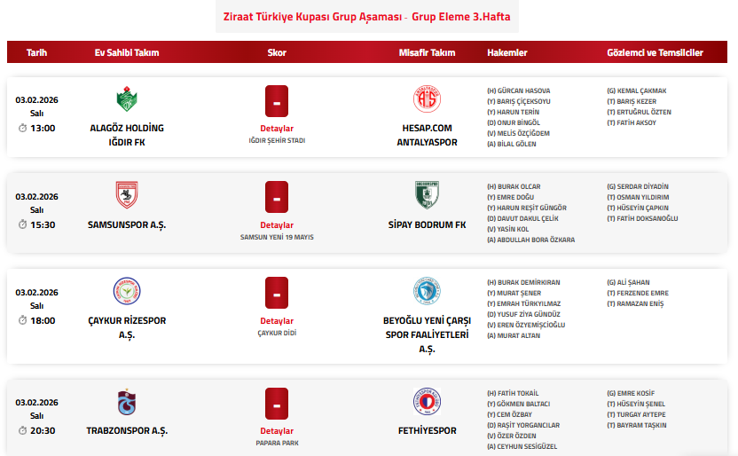 Kupada grup aşamasının kritik virajına girildi. Bugün (3 Şubat Salı) oynanan ve oynanacak maçların detayları şöyle: